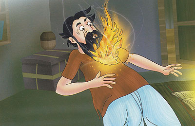 candle's flame. It instantly caught fire and began to burn. "Eeeaaaaa!"