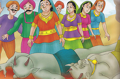 Dhum! Dhum! came the sound as he walked into the hall. The mother