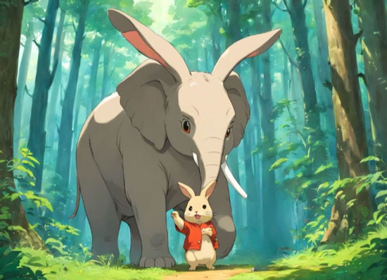 Amidst the chaos, one Rabbit named Vijaya remained calm. Vijaya was clever, and unlike the other Rabbits, who were too afraid to act, he saw an opportunity to outsmart the Elephants. Vijaya knew that he could never defeat the Elephants with strength—after all, they were huge and powerful—but he was certain that his wit could find a way to save his fellow Rabbits.