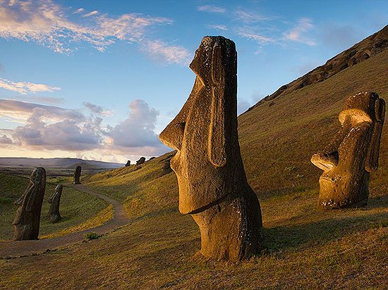 Easter Island Is one of the most isolated islands in the world. It is situated in the South Pacific Ocean, about 2,350 miles west of Chile. The island was called Rapa Nui by the inhabitants. The name ‘ Easter Island ‘ was given by a Dutch explorer who discovered it on Easter Sunday in 1722. There are more than 600 huge statues called “moai” spread over the island, each carved from a single block of soft stone by the Rapa Nui people. Some are more than 30 feet (9m) high. The island was made into a national park in 1935. Its listed as a UNESCO World Heritage Site.